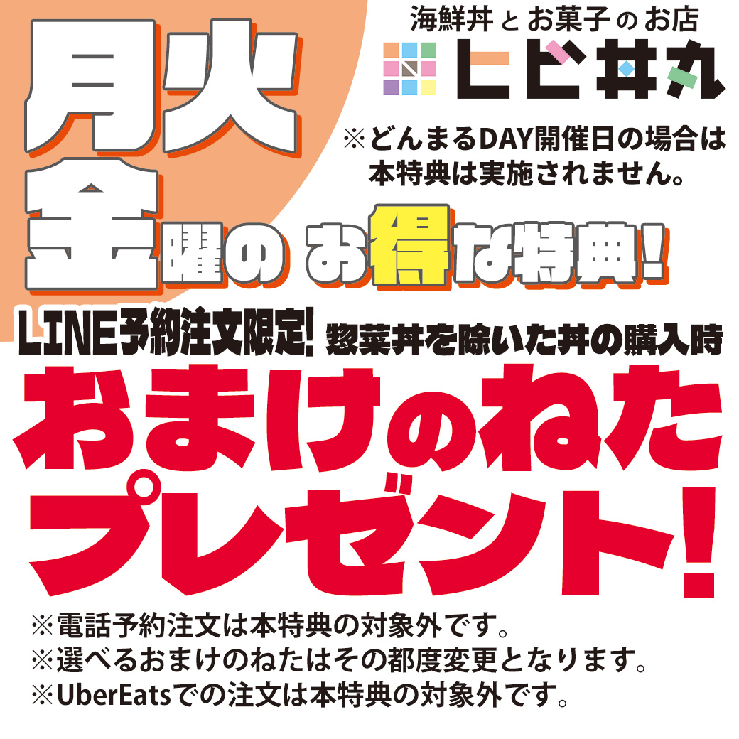 LINEから予約すると丼の注文時におまけのねたをトッピング!